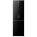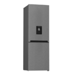 A spacious metallic fridge, with an integrated door handle, with easy access to both the fridge and freezer compartments.